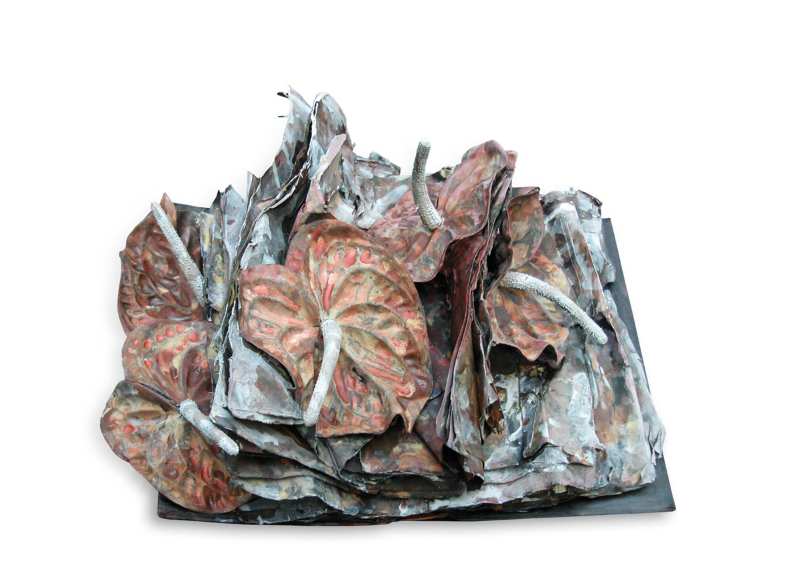 Neben den Buchobjekten, die eines der Hauptarbeitsgebiete von Martin Schwarz sind, begegnen wir auch den Gardinendrucken; einem Druckverfahren, das Martin Schwarz erfunden und weiterentwickelt hat. Für dieses „Bücherblumen“-Buch wurden sie teilweise neu gedruckt und bemalt, mit dem Ergebnis experimenteller Variationen.